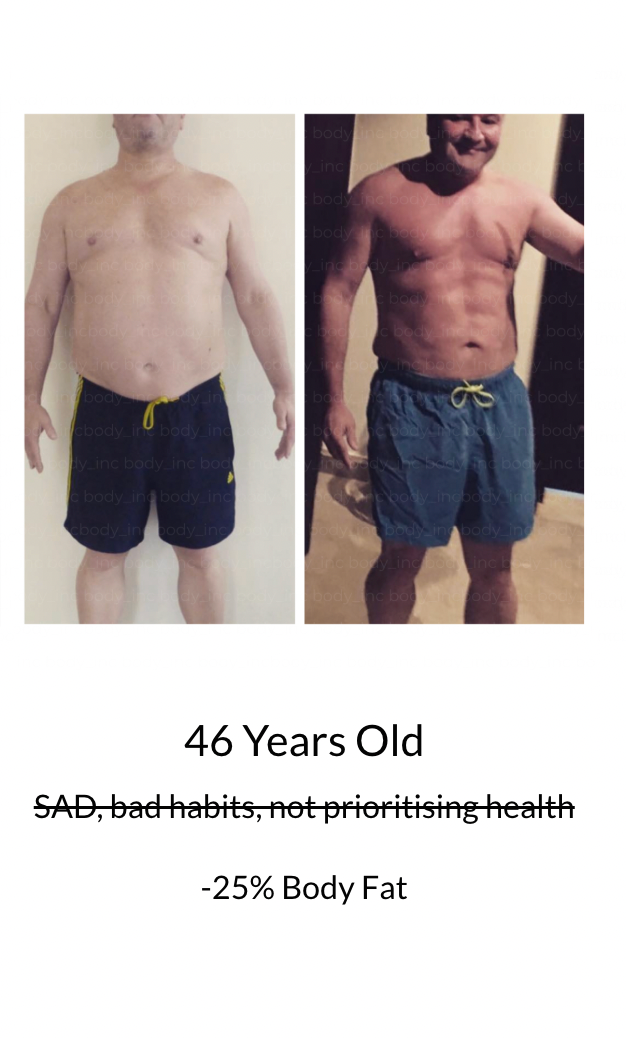 - Body fat reduced from ~26% to ~13% in 12 weeks